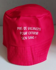 Marquage : coloris blanc « Pas de vacances pour offrir son sang »